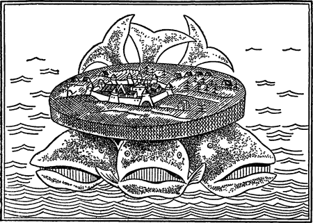 Рис. 2. Многие наши предки думали, что Земля держится на трёх китах, плавающих в океане (древний рисунок).