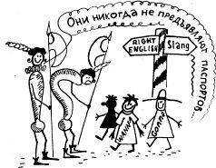 Никто не может дать четкого и более-менее точного определения слэнга. Bсe определения типа «язык низших слоев…», «язык беспутных грамотеев…», «специфический жаргон определенной группы людей…» не выдерживают никакой критики (моей тоже). Я бы дал слэнгу следующее определение: СЛЭНГ – ЭТО ВСЕ ТО, ЧТО НЕ ПОПАДАЕТ В УЧЕБНИКИ.