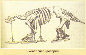 Совсем другой облик имеет глиптодонт, или гигантский ископаемый броненосец. Останки такого животного Дарвину удалось обнаружить не только в районе Баия-Бланка, но и несколько позже близ города Санта-Фе. На первый взгляд глиптодонт напоминает огромную, размером чуть ли не с носорога, черепаху, в основном благодаря мощному куполообразному спинному панцирю. Натуралист, описывая свою находку глиптодонта, рассказывал, что "внутренность панциря, очищенная от земли, была похожа на большой котел". Но в действительности, это вовсе не рептилия, а млекопитающее, представитель отряда неполнозубых, довольно близкий родственник мегатерия. Глиптодонты имели короткие конечности, заканчивающиеся широкими, копытообразными когтями. У некоторых видов на хвосте были острые костные отростки, так что хвост напоминал булаву, при помощи которой можно было отражать нападения хищников. Судя по строению зубов, гигантские ископаемые броненосцы питались жесткой растительной пищей.