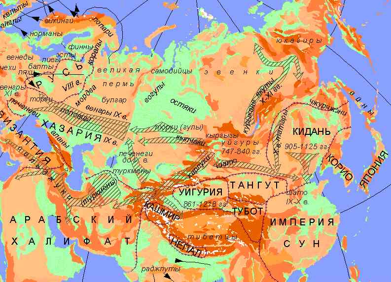 Карта 3. Миграции народов Евразии в IX–XI вв. н. э.