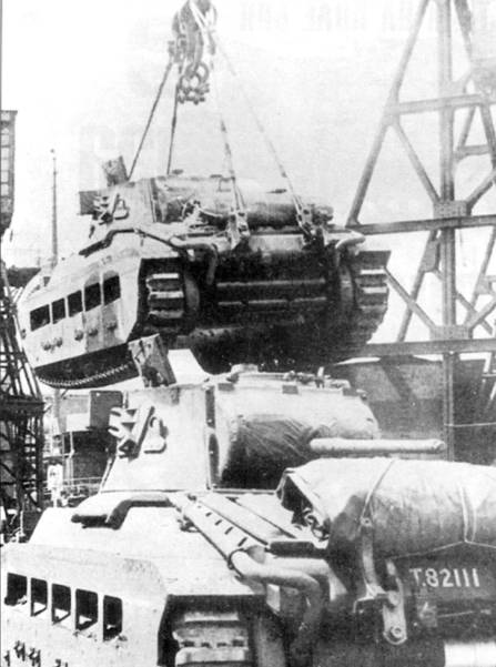 Погрузка танков «Матильда II» на судно, плывущее в СССР, 1942 год.