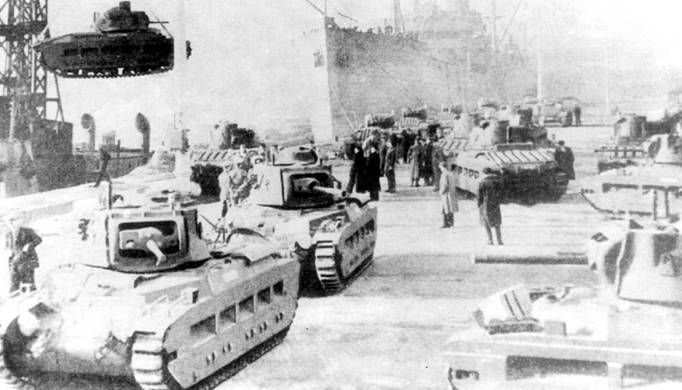 Выгрузка танков «Матильда II» в Архангельске, февраль 1942 года.