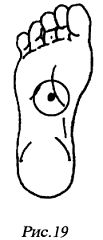 Точку определяют в положении сидя или лежа при согнутых пальцах стопы (в центре образовавшейся складки).