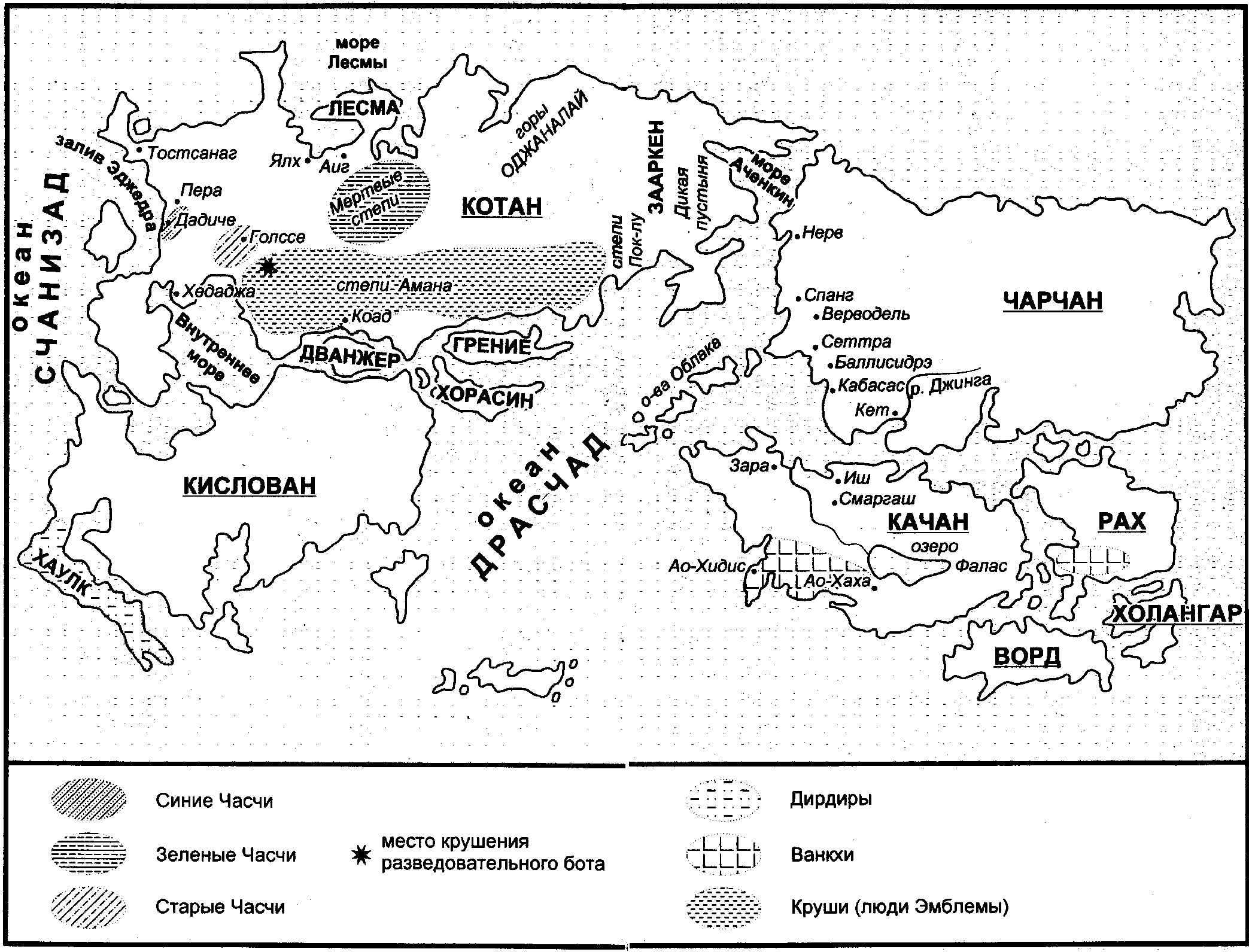 По левому борту корабля «Эксплоратор-IV» мерцала тусклая затухающая звезда Карина-4269, справа нависла единственная планета системы, коричневато-серая под тяжелым покровом атмосферы. Звезда отличалась разве что своим необычным янтарным светом. Планета была немного больше Земли, вокруг нее быстро вращались два маленьких спутника. Типичная звезда класса К-2, ничем не примечательная планета, но люди на борту «Эксплоратора-IV» наблюдали за ними словно зачарованные.