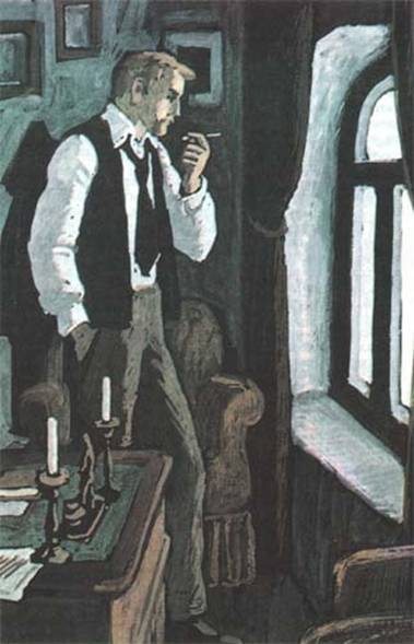 Он ходил быстрой, нервной походкой, как ходят сильно взволнованные люди, опустив на грудь голову, покрытую белокурыми, слегка волнистыми густыми волосами. По временам он останавливался у письменного стола и рассеянно отхлебывал из стакана чай или подходил к окну и напряженно всматривался в серую дождливую мглу мрачного осеннего петербургского утра.