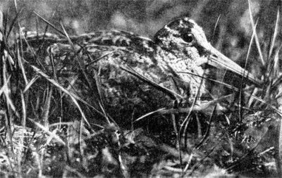 Особенно красивы большие черные глаза и характерный длинный клюв вальдшнепа. На конце клюва можно рассмотреть шероховатость в виде небольших бугорков, одетых мягкой кожицей. Если у застреленной птицы вскрыть кожу на конце клюва и рассмотреть его строение под сильной лупой, то можно заметить между бугорками ямки, к которым подходят мелкие нервы. Благодаря такому строению клюв вальдшнепа — совершенный орган осязания. Птица глубоко втыкает клюв в землю и улавливает ничтожнейшие сотрясения, которые производят в земле червяки и личинки насекомых.